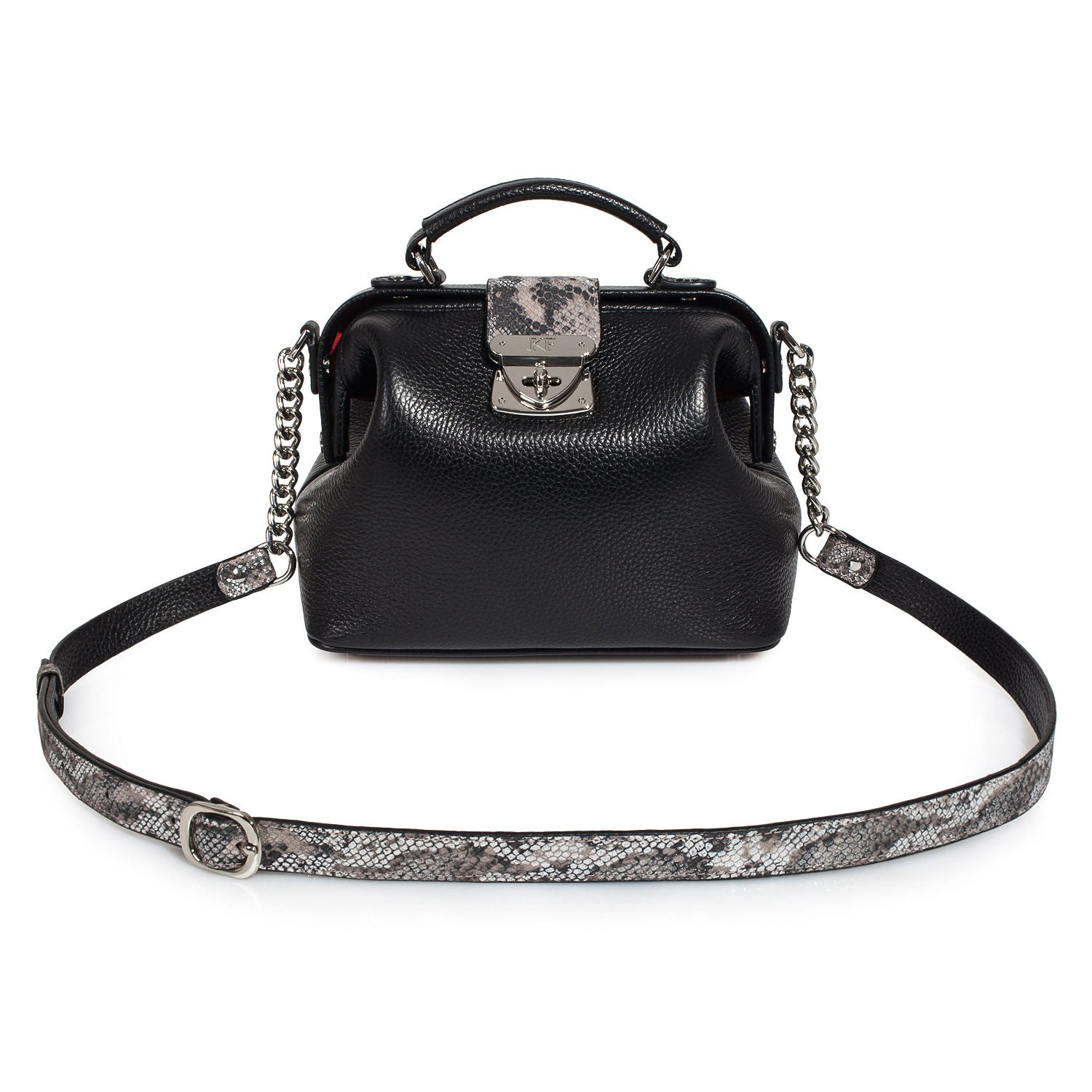 Black genuine leather boxbag from ukrainian designer Katerina Fox. This model is designed for women who appreciate the sleek design combined with functionality and comfort. High-quality and reliable hardware ensure long service bags. The internal space of a bag is equipped with one spacious compartment and two patch-pockets and one zipper pocket. The bag is closed with a clasp. The bottom of the bag is protected with metal legs. There is a long handle that allows you to wear the bag on the shoulder. The kit also includes a storage bag.