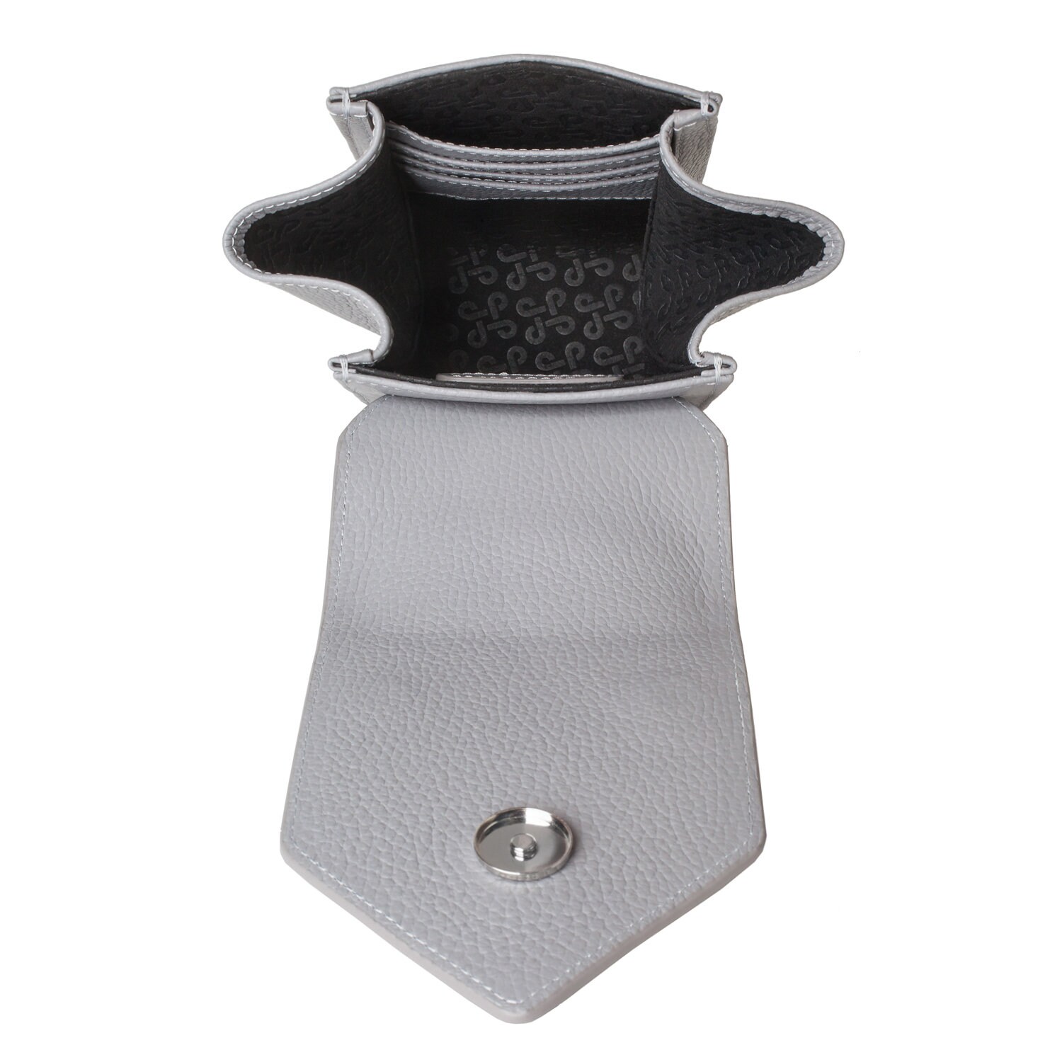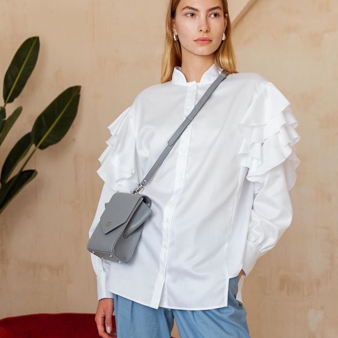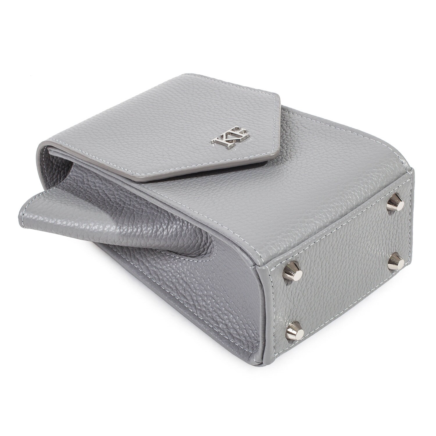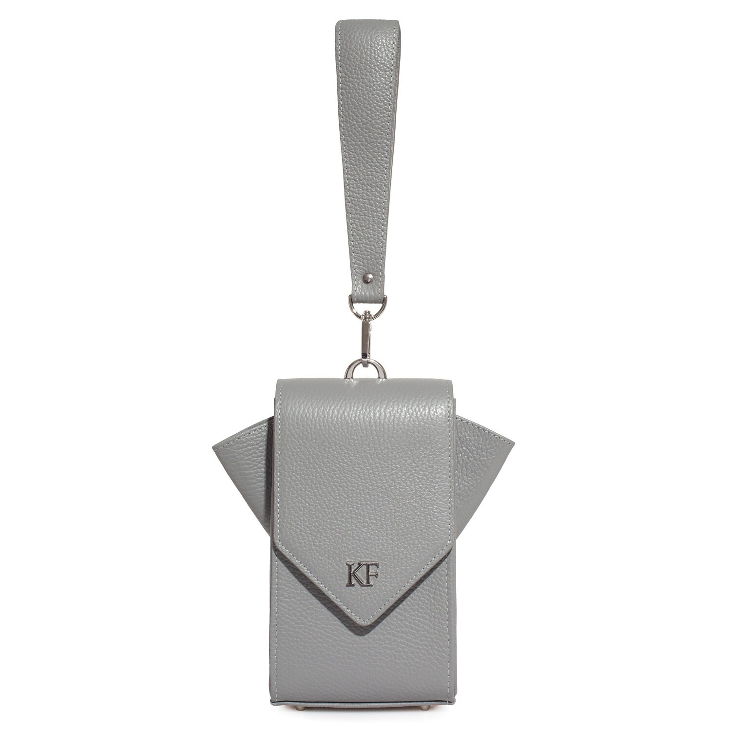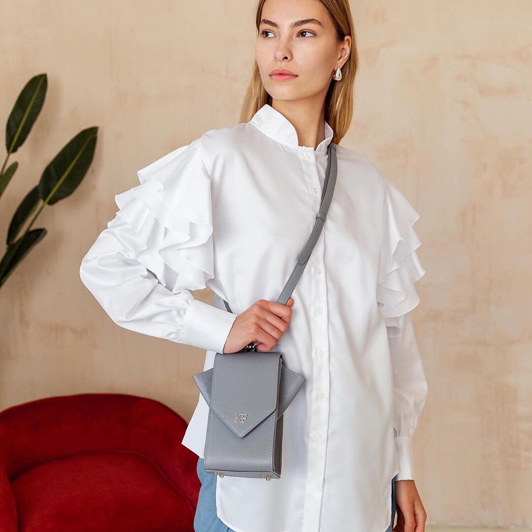 Dark gray genuine leather woman crossbody bag from ukrainian designer Katerina Fox. Fashionable and elegant modern bag KF for bright girls and women. This bag is able to attract attention and highlight your exquisite taste. All accessories for Katerina Fox bags makes the same factory as for Michael §¬ors, Calvin Klein, DKNY and other famous brands.The internal space of a bag is equipped with one spacious compartment, four patch pockets for cards. The bag is closed on the button-magnet. The bag has a short removable handle on wrist.The length of the strap is adjustable. The kit also includes a storage bag.