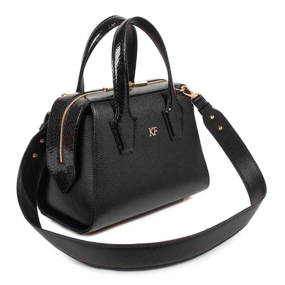 Leather Top Handle Bag, Black Leather Handbag Top Handle, Women's Leather Bag KF-4047