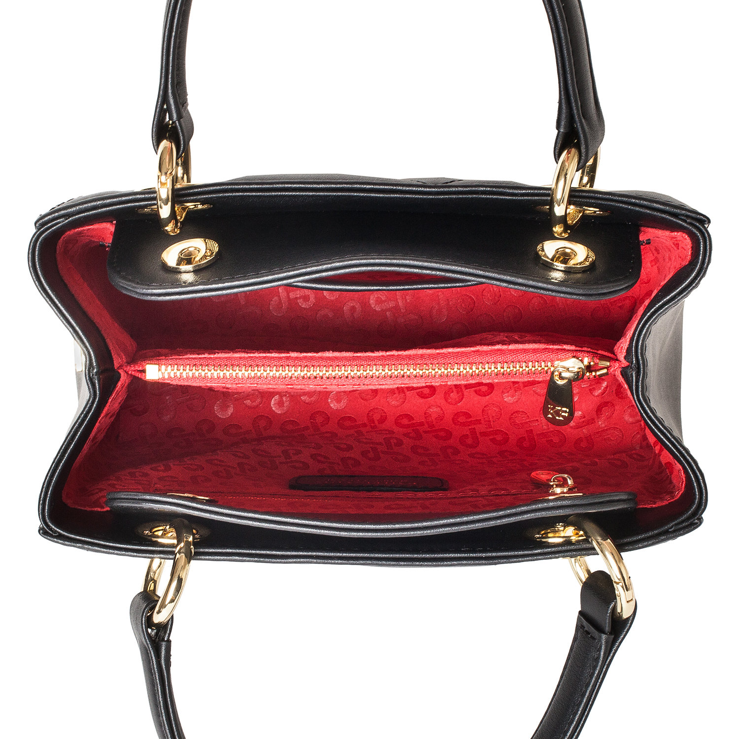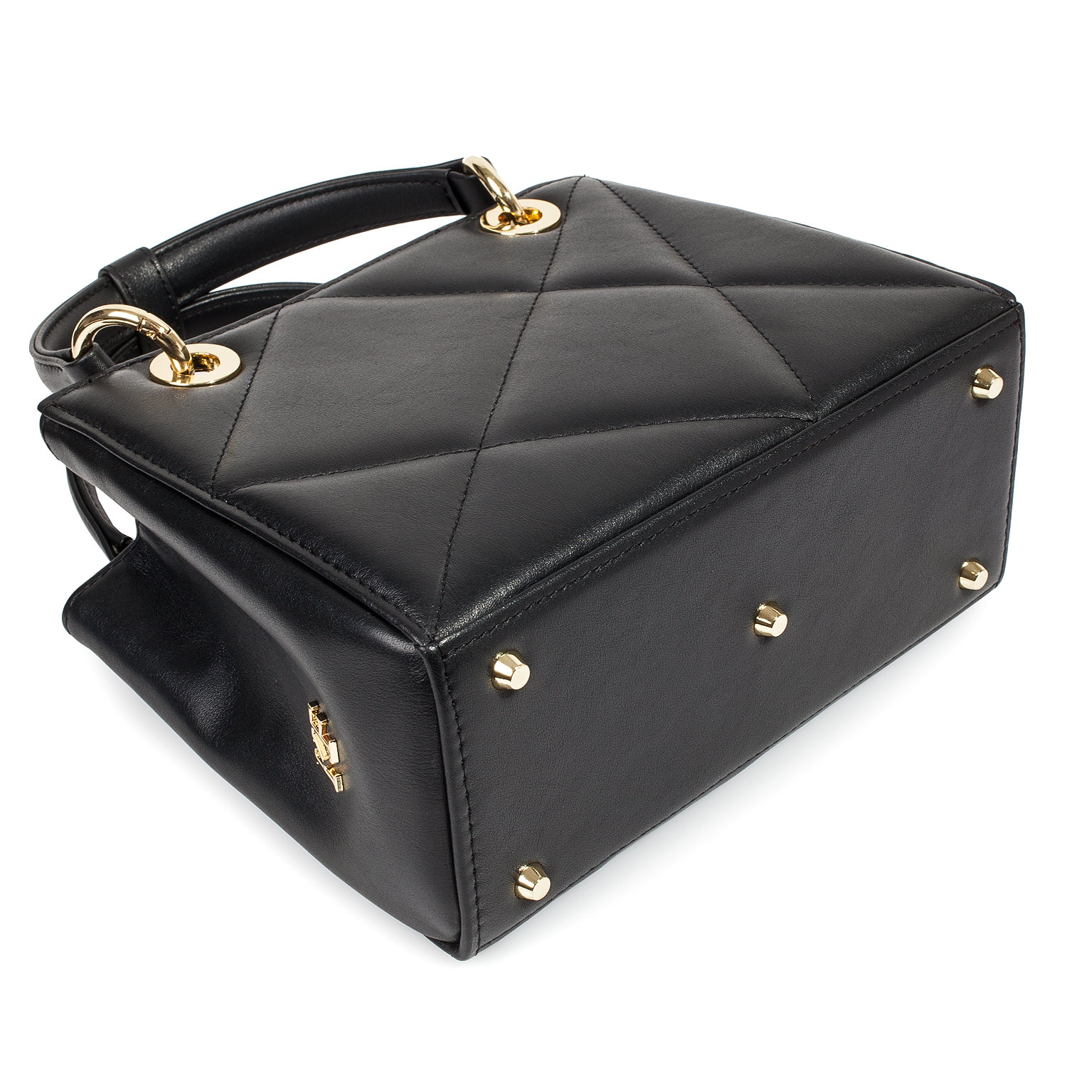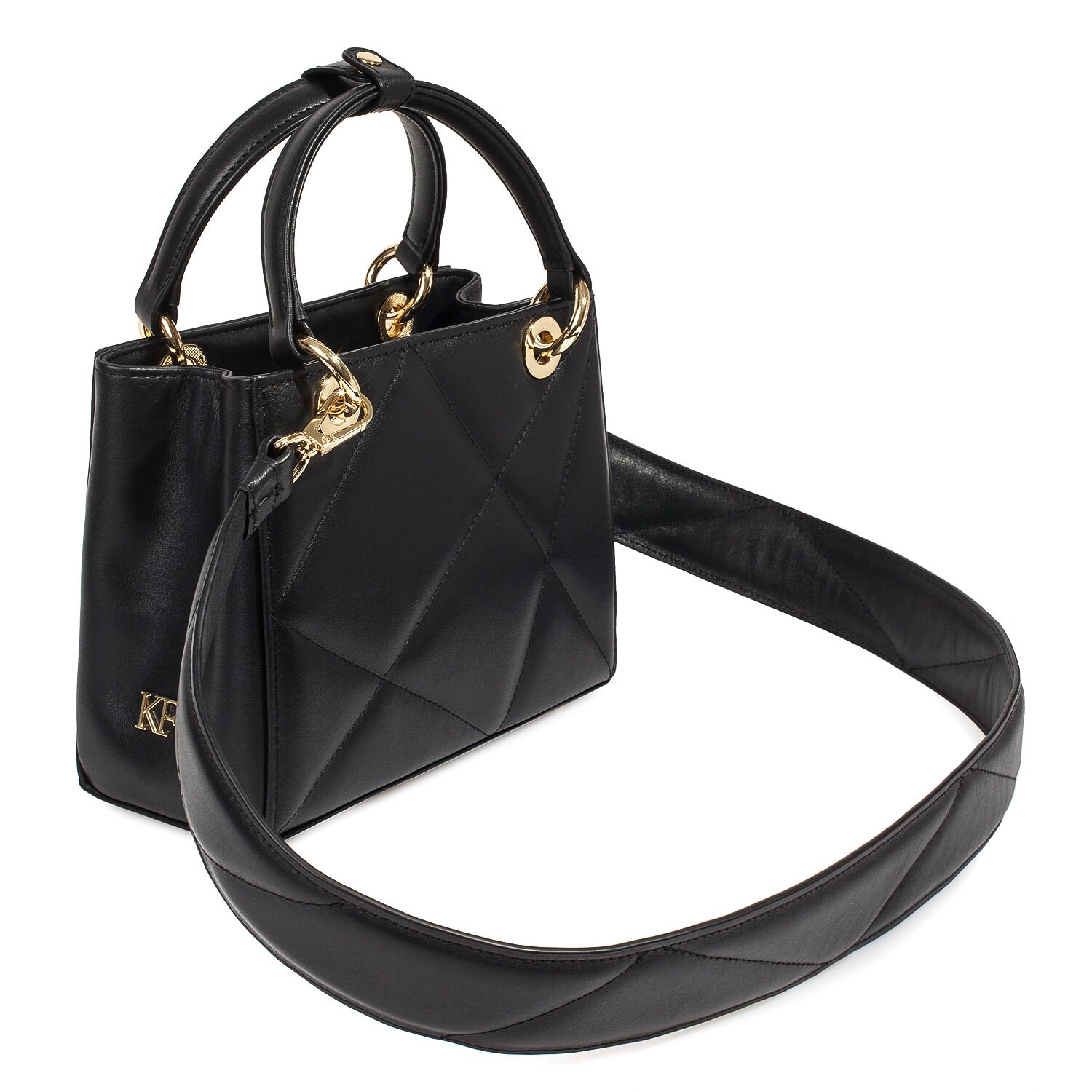 Black genuine leather handbag from ukrainian designer Katerina Fox. This model is designed for women who appreciate the sleek design combined with functionality and comfort. High-quality and reliable hardware ensure long service bags. Inside the bag are three spacious compartments, one with zip, two patch pockets and one zippered pocket closes with a zipper. The bottom of the bag protected by metal feet.