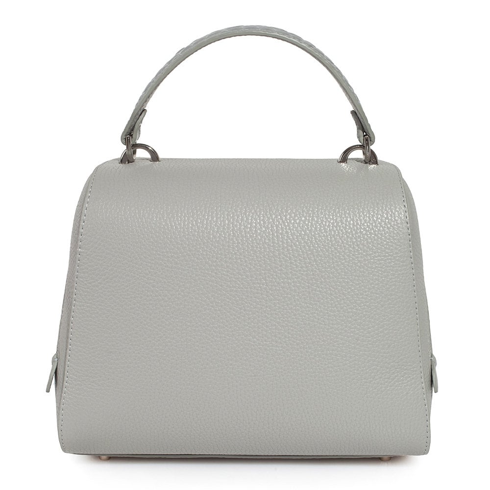 Gray genuine leather handbag from ukrainian designer Katerina Fox. This model is designed for women who appreciate the sleek design combined with functionality and comfort. High-quality and reliable hardware ensure long service bags. The internal space of a bag is equipped with one spacious compartment and two patch-pockets and one zipper pocket. The bag is closed with a zipper. The bottom of the bag is protected with metal legs. There is a long handle that allows you to wear the bag on the shoulder. The kit also includes a storage bag.