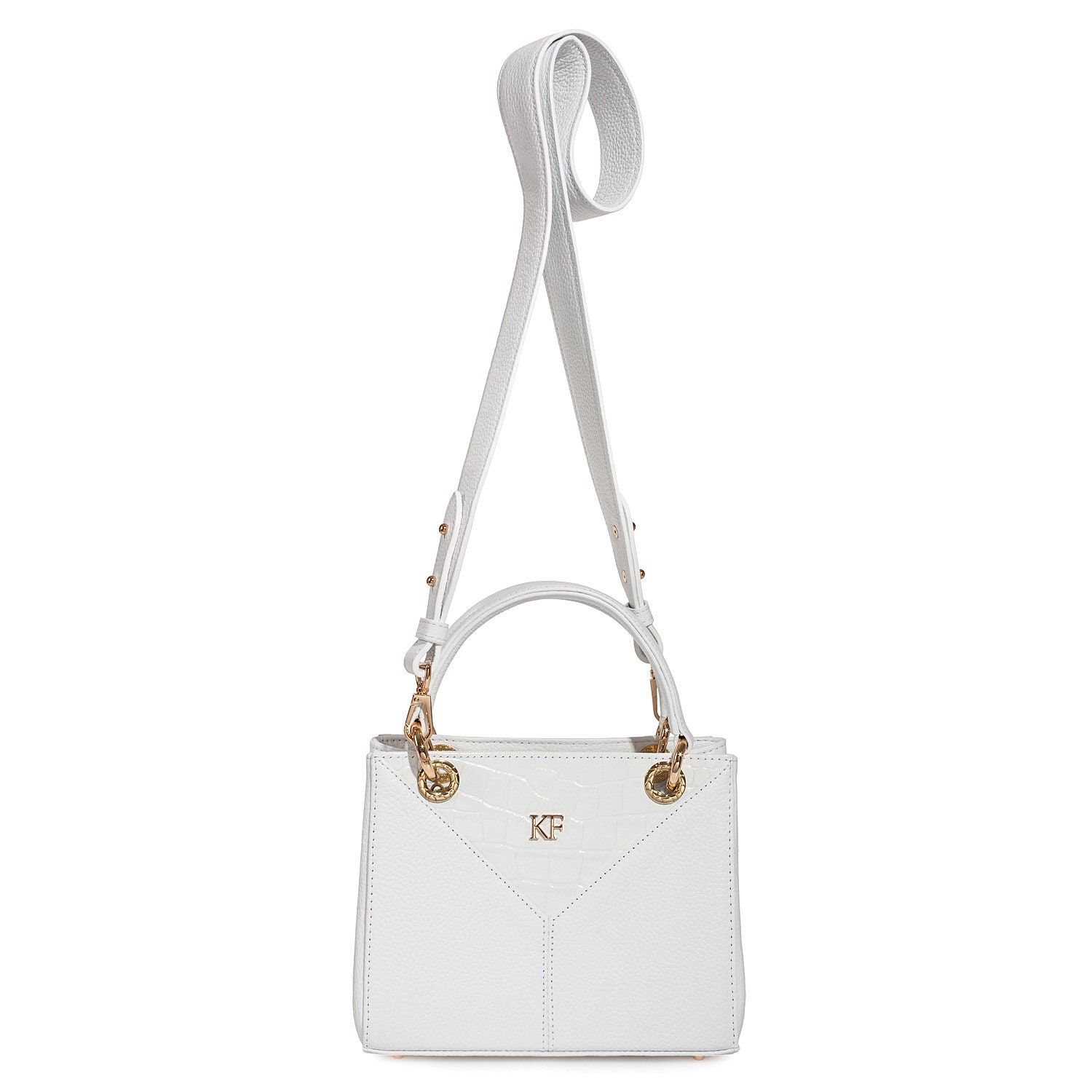 Delivery: In most cases our goods are shipped by FedEx or Ups Express. On rare occasions the goods might be shipped by Ukrposhta. The clients should check in advance an estimate of the amount of customs duty and value added tax.White genuine leather handbag from ukrainian designer Katerina Fox. This model is designed for women who appreciate the sleek design combined with functionality and comfort. Despite the simplicity, this bag stands out thanks to a triangular insert in black suede leather. High-quality and reliable hardware ensure long service bags. Inside the bag are three spacious compartments, one with zip, two patch pockets and one zippered pocket closes with a zipper. The bottom of the bag protected by metal feet.